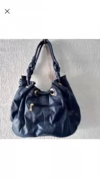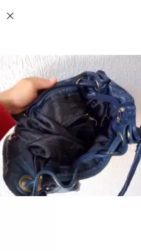 Bolsa de piel azul marino tipo baguette. Bolsa 100% de piel, hecha en Mexico. Es bolsa pequeña pero le caben bastantes cosas. No tiene ningun detalle