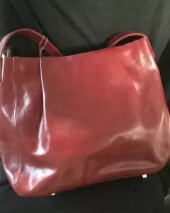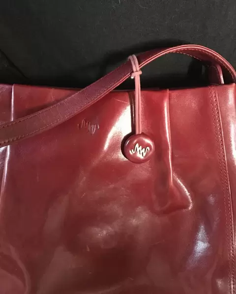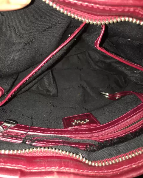 Bolsa roja piel Monsac, sin detalles en buenas condiciones, 34 cm de ancho, 26 cm de alto