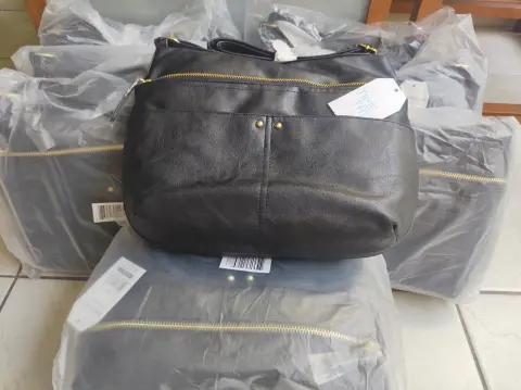 Bolsa de piel negra, buen tamaño con varios compartimentos, excelente calidad y precio