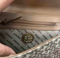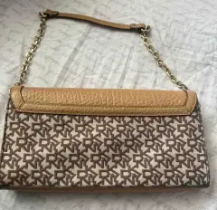 Bolsa DKNY. Mide 29.5 cm x 15.5 cm, es al hombro con cadena, súper bonita, es nueva porque nunca la use, tiene la marca en la hebilla del broche, por dentro y en las topo tachuelas de la agarradera, esta súper bonita , no es piel