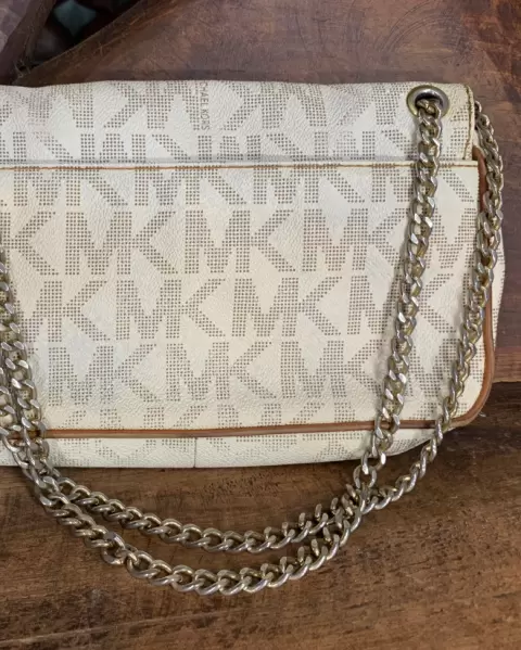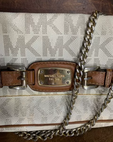 Bolsa Michael Kors, luce muy elegante y classy. Se puede usar como bolsa de mano o tipo crossbody. Presenta ligeros raponsitos en la placa pero yo le di limpieza ✨el único detalle es que tiene manchado la parte de la tapa adentro pero no se ve a menos que lo muestres a propósito🌟 Por eso el precio.