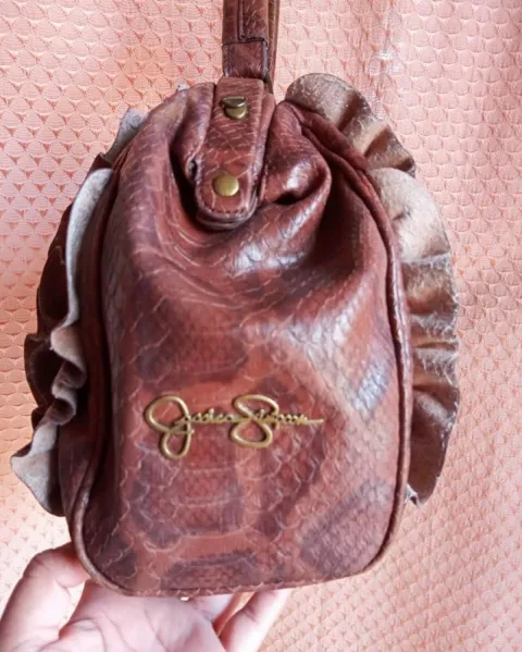 BOLSA JESSICA SIMPSON. Diseño floral en el interior y diseño de piel de cocodrilo/serpiente en el exterior. Pequeños desgastes de uso. Medidas: 37 cm de ancho y 24cm de alto aproximadamente, sin contar la aza