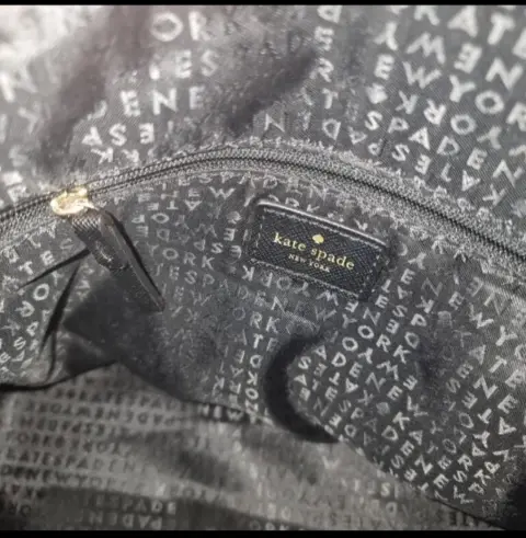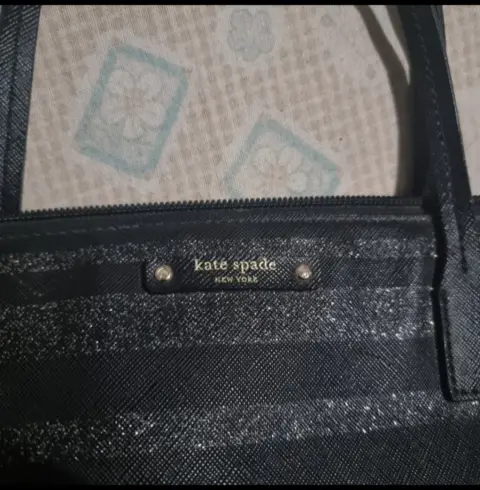 Bolsa Kate spade negra. Bonita.bolsa solo minimos detalles de uso, por dentro está muy bien, bonito diseños de franjas de brillos plateados.