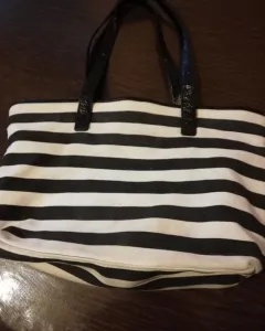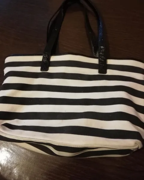 Bolsa bicolor, es usada pero tiene aun mucha vida, se encuentra un poco despintada por lavarla es de tipo lona, tiene pequeñas manchas pero se quitan al lavarla