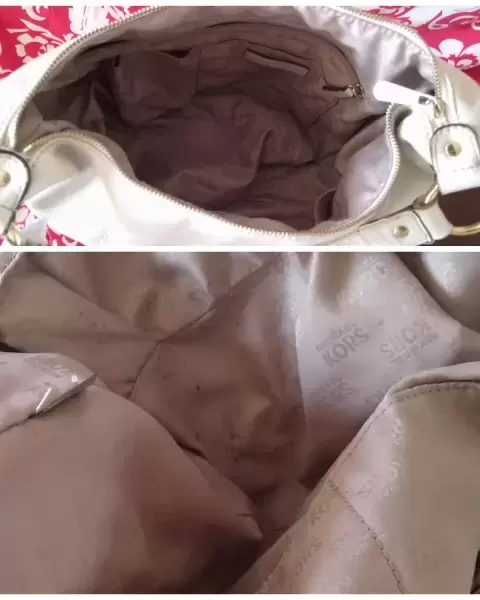 Bolsa Michael Kors. Olor hueso no rota sólo con detalles de uso mínimos estéticos en las tasas peladas sólo de las orillas del flash y quito negro y al inicio del asa (tercera foto), la bolsa está lavada el perro tiene una mancha leve mide 38 cm de ancho por 29 de altoOfertas solo razonable te invito a buscar su precio con su código antes de ofertar