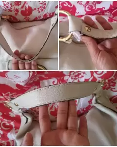 Olor hueso no rota sólo con detalles de uso mínimos estéticos en las tasas peladas sólo de las orillas del flash y quito negro y al inicio del asa (tercera foto), la bolsa está lavada el perro tiene una mancha leve mide 38 cm de ancho por 29 de altoOfertas solo razonable te invito a buscar su precio con su código antes de ofertar
