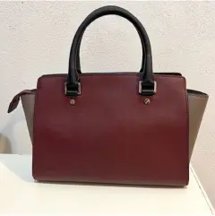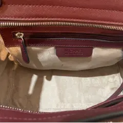 Bolsa Michael Kors Selma. Bolsa color vino, herrajes plateados y asas negras. Incluye strap para usar crossbody.Solo el interior tiene ligera mancha, el exterior en excelentes condiciones.35/27x20x13