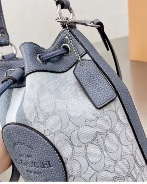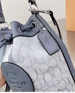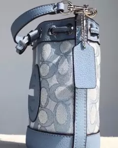 Bolsa MINI en un tono azul celeste, con strap ajustable ideal para llevar accesorios pequeños 14cm x 8 cm x 16.5cm Acabados bordados