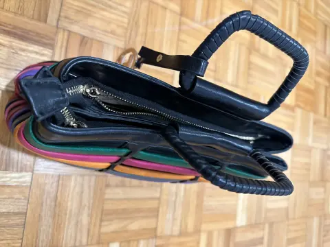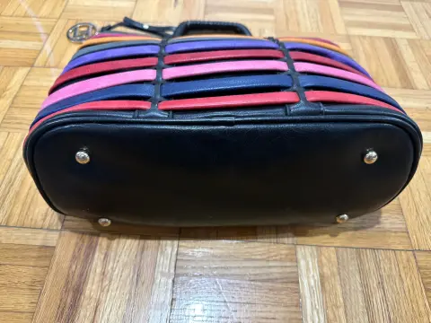 Bolsa multicolor piel. Bolso negro con franjas de colores, sus son cuadradas y se puede tomar en mano y ponerse en hombro Totalmente nueva