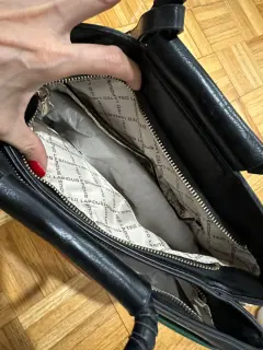 Bolso negro con franjas de colores, sus son cuadradas y se puede tomar en mano y ponerse en hombro Totalmente nueva
