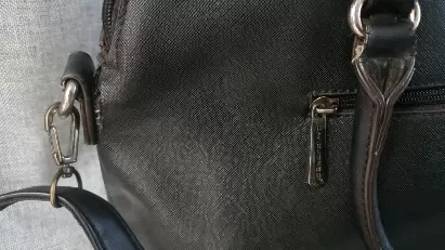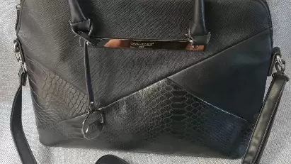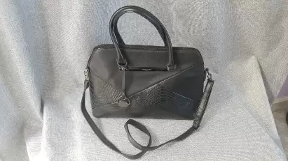 Amplia Bolsa de mano, marca David Jones.Estética del productos y herrajes al 100%.Dimensiones 36cmX27cmX13cmAsas de 18cmAsa adicionalDesgaste en las esquinas de la bolsa, así como en el asa adicional