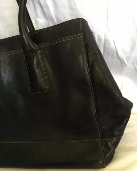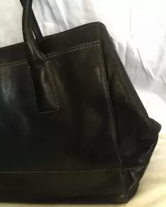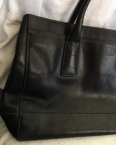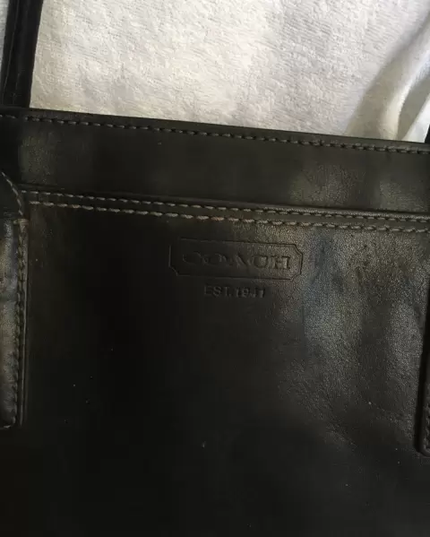 Bolsa negra Coach de piel, en condiciones de uso normal, sin detalles, 34 cm de largo, 22 cm de ancho
