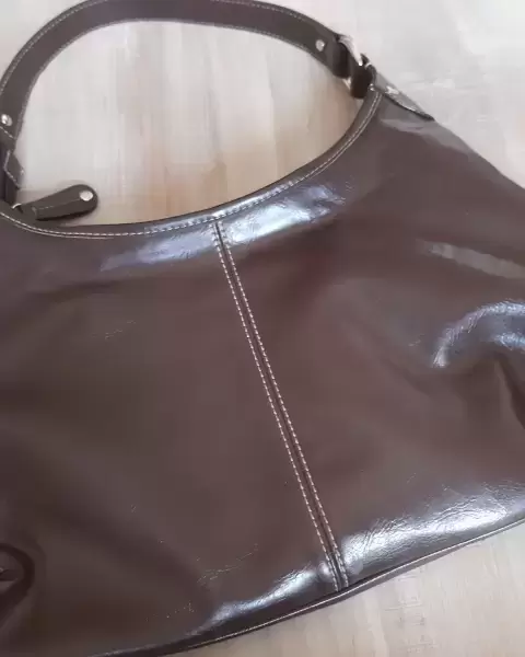 Bolsa de hombro color cafe,de piel con algunos detallitos que a simple vista no son notorios. La bolsa se uso 2 veces. En las esquinas tiene unas manchitas blancas.