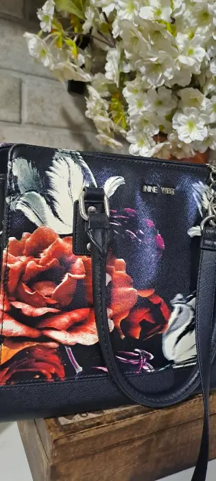 Bolsa nine west. Hermosa bolsa marca nine West en excelente estado , negra con flores , 3 compartimentos muy bonita