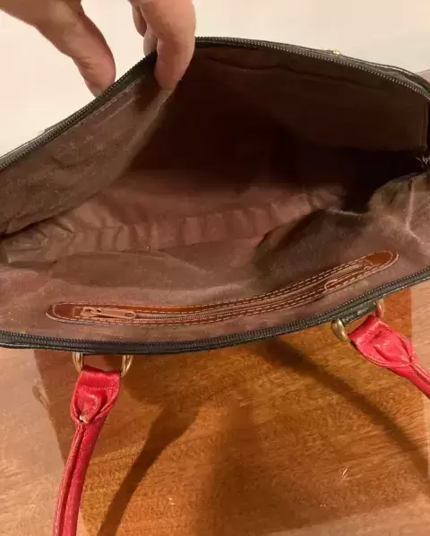 Bolsa de piel negra con roja, muy amplia, ideal para el dia s dis,