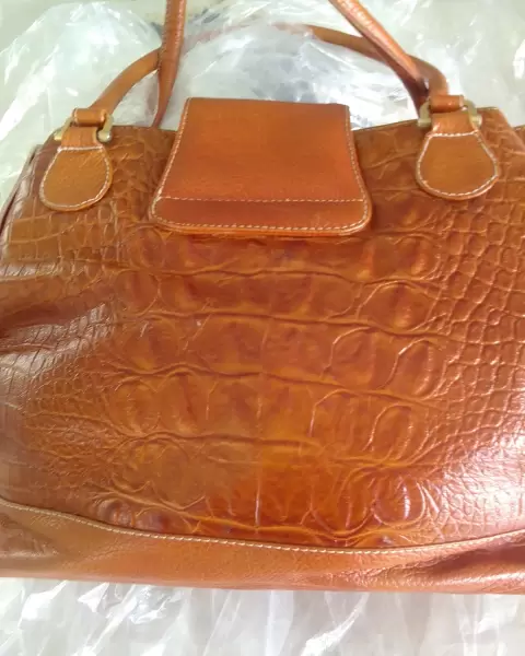 Bolsa piel suave. De lujo. Piel fina, tipo de trabajo amartillada por el tipo de dibujo. Varios departamentos. Ligera, cómoda se cierra con imán. De vestir o para diario, siempre lucirás cool. Color miel.