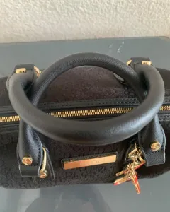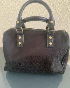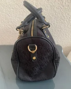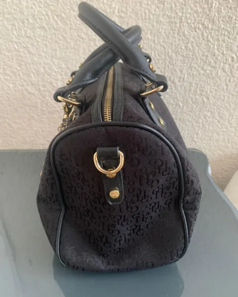 Bolsa tipo Bowling. Bolsa tipo bowling de asas cortas, dimensiones:Alto 19 cm Ancho 12 cm Largo 29 cm, de tela, color negro con diseño de la marca con detalles en dorado, asas en perfectas condiciones.Si te interesa y tienes alguna duda u oferta, no dudes en escribirme ☺️