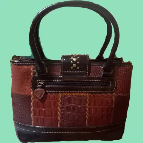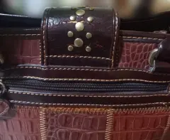 Hermoso bolso con detalles en print, poco uso solo se agrieto en la parte superior, en perfectas condiciones.