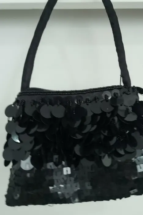 Divina bolsita color negro con lentejuelas grandes. Ideal para reestrenar en esta época de graduaciones y festejos. Se cierra con cierre. Cabe perfecto tu celular, lipstick y llaves.