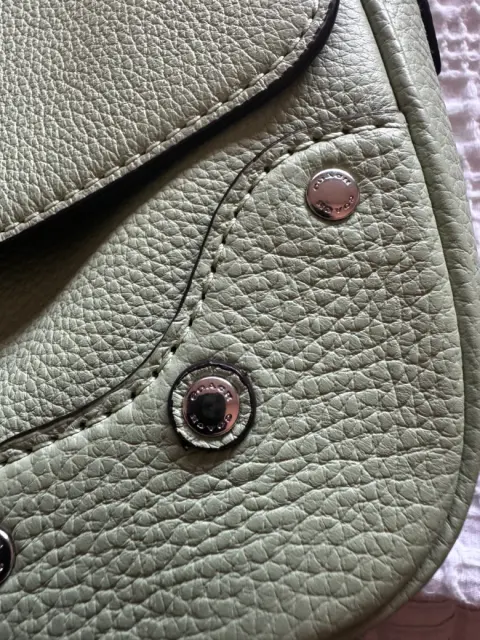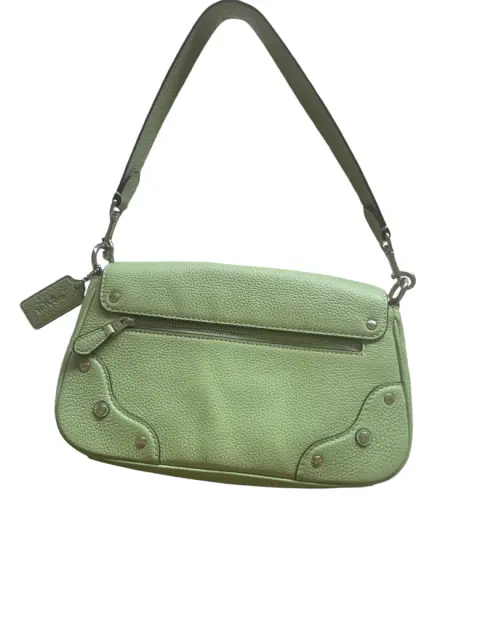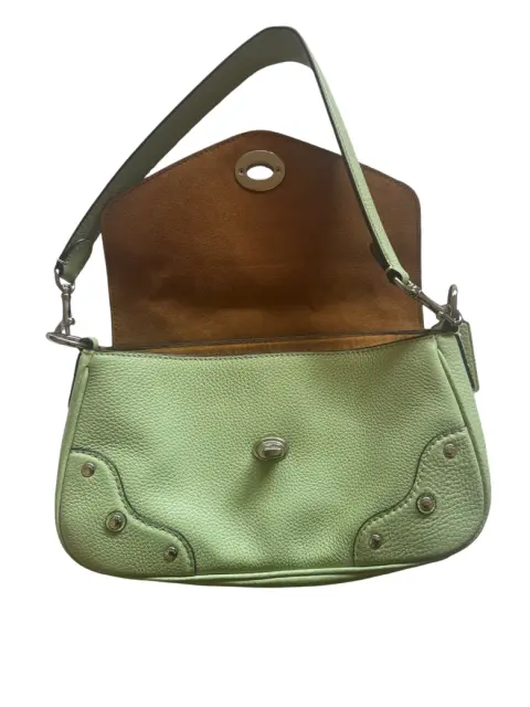 Bolso Coach. Bolso de Hombro en Cuero Verde Pastel - Estilo Casual y ModernoEste hermoso bolso de hombro en cuero verde pastel es perfecto para quienes buscan un accesorio versátil con un toque fresco y moderno. Su diseño compacto y ligero lo convierte en el complemento ideal para tus outfits diarios, aportando un estilo relajado pero sofisticado.Color: Verde pastel.Material: Cuero genuino.Detalles: Cierre metálico, herrajes plateados y costuras decorativas.Ideal para el uso diario o para complementar un look casual chic.Este bolso es una excelente opción para quienes quieren incorporar un toque de color a su colección de accesorios sin sacrificar elegancia y funcionalidad. ¡Añádelo a tu guardarropa y luce con estilo en cualquier ocasión!