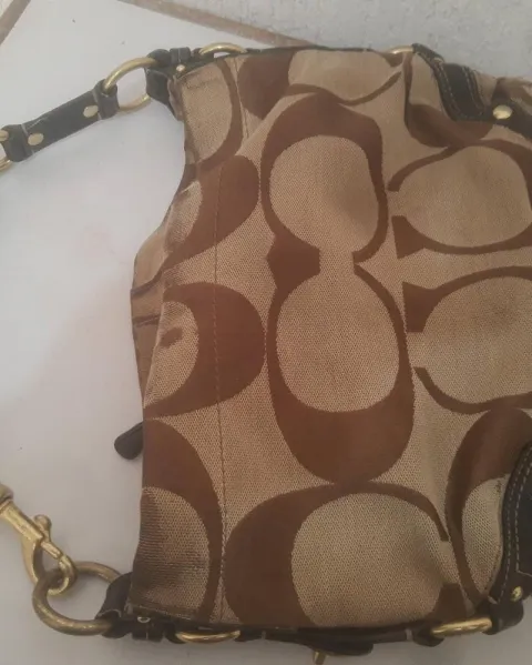 Es un bolso choach original con años de uso el producto no es clon ni pirata pero tiene desgaste de uso como se aprecia en las fotos todos sus suerres funcionan así como sus herrajes está intacto por favor leer toda la descripción. El bolso está usado pero intacto y original