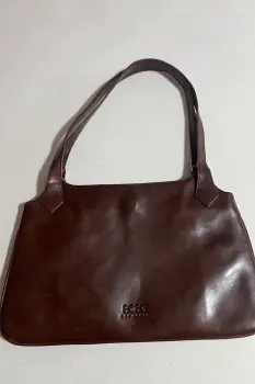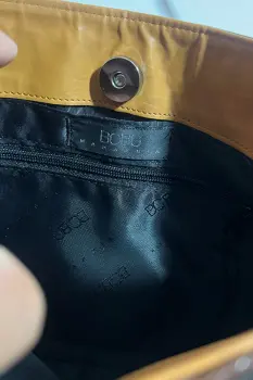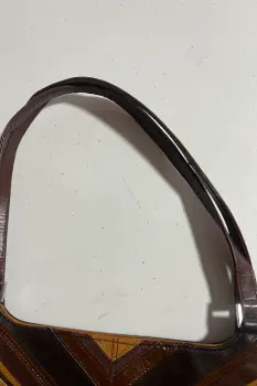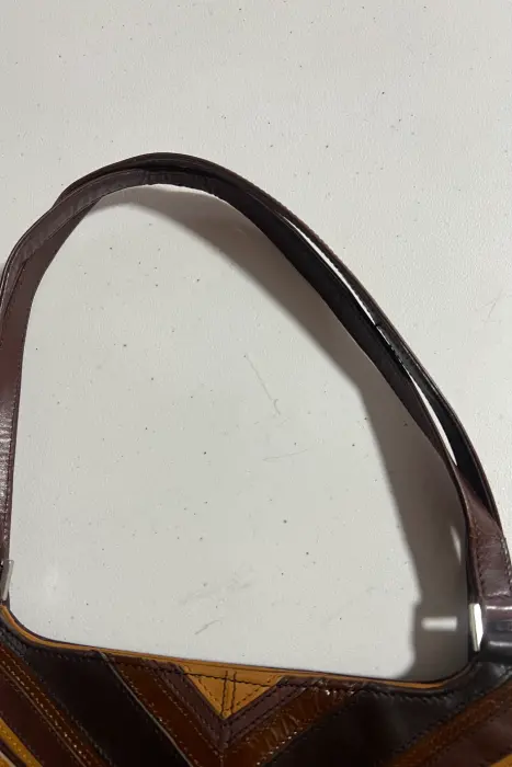 Bolso de hombro Vintage. Bolso de mano BCBG MaxAzria con un elegante diseño geométrico de chevron con bandas en tonos de marrón y mostaza, perfecto para añadir un toque sofisticado a cualquier atuendo. Aunque muestra señales de uso que añaden carácter, la calidad del cuero y la artesanía se mantienen intactas.