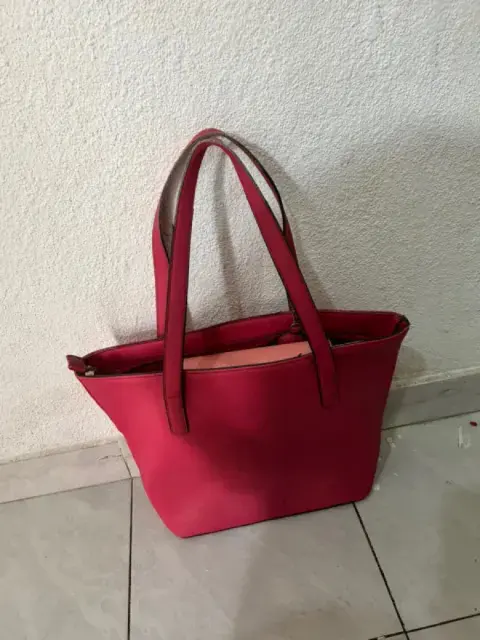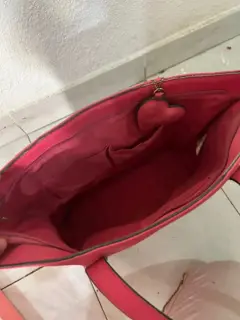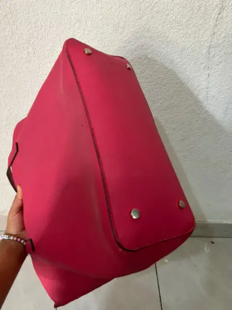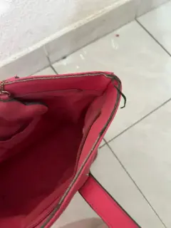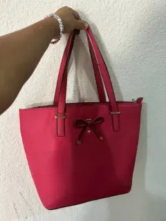 Bolso mediano color fiucsa con moño colgante, está en perfecto estado, solo tiene unas tiritas que se están callendo sobre todo de las agarraderas, pero no está para nada rota, seguro si se arregla queda como nueva, por dentro está perfecta