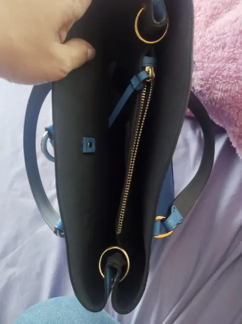 Bolso de mano pequeño, color azul rey, marca AccessoriZe, medidas 22x30x14.5, nueva sin etiqueta y le falta la cinta para hacerla más larga