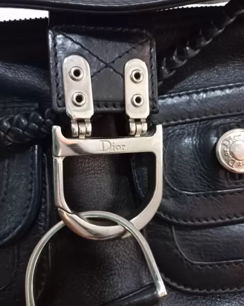 Bolsa Christian Dior Vintage, en excelente estado, dos bolsillos al frente, herrajes color plata