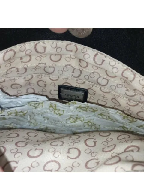 Completamente nueva!! Bolso de mano guess29 largo19 alto15 de anchoCon 4 compartimentos, el compartimento mas grande cuenta con cierre y 2 con broche.Trae strap largo 115 cm para usarla larga.Es muy amplia y bonita!!!Precio tratable