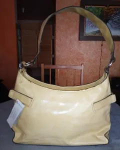 Bolso de mano "Huser" pequeña amarilla. Bolso "Huser" de mano, pequeña 18 cm de largo X 33 cm de ancho, material rígido ( Manchada de la base)