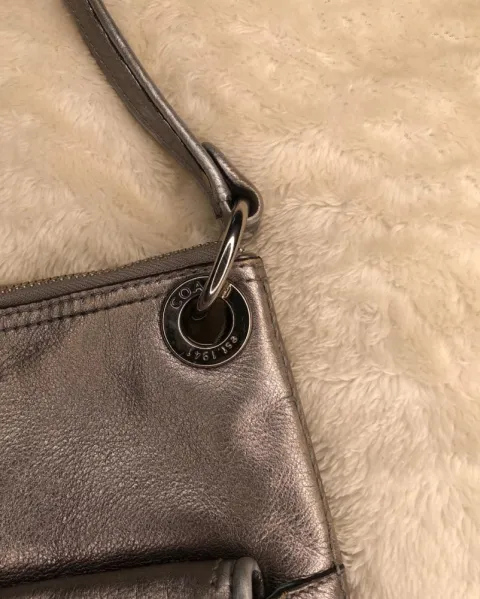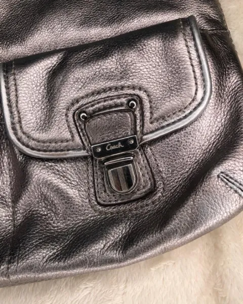 Bolso de mano plateado. Bolsa de mano coach original que igual se puede usar de hombro, le cabe lo esencial, tiene muy leves detalles que se pueden observar en fotos, muy bonita