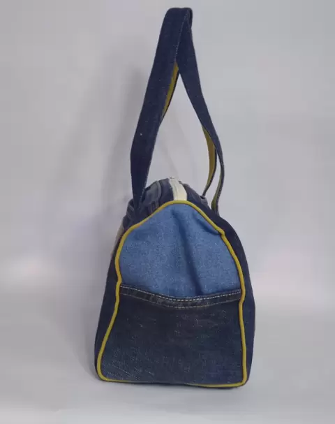 Hermoso bolso de mezclilla con vivos color mostaza , medidas largo 30cm, alto 22 cm, ancho 12 cm.Ideal para salidas casuales o informales.