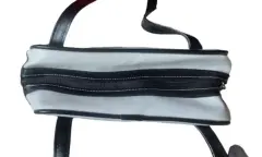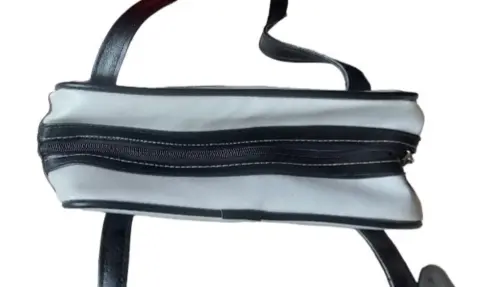 Bolso tipo Duffle deportivo pequeño color blanco con letras y distintivos en color negro, cierre funcional con bolsillo interno. Escaso uso un poco dañado por el tiempo y manipulación (pequeñas marcas como de marcador)