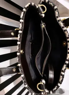 Hermosa bolsa trenzada de piel, en color negro, blanco y café, nueva, original, tiene correa ajustable que se quita y pone, tiene cierre interior y varios compartimentos, le cabe de todo, ideal para esta temporada ya que tiene como estilo veraniego y combina con todos tus looks.