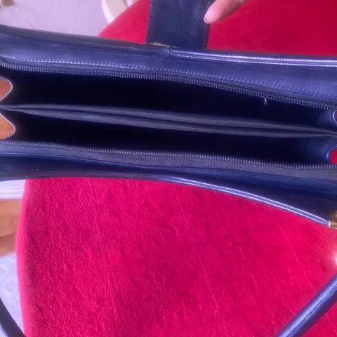Bonita bolsa de mano azul marino. Hermosa bolsa, una sola puesta, de 28X20X10 cm, sin detalles, herrajes dorados en perfecto estado