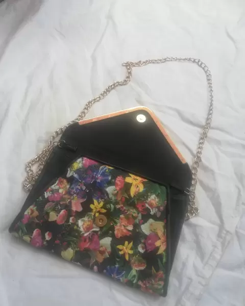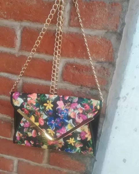 Cartera con cadena dorada. Bosla tipo cartera con una cadena dorada muy juvenil