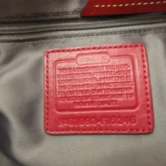 Coach Bolso de Charol Grabado. Bolso de hombro estilo satchel de charol grabado en rojo con el logo de Coach