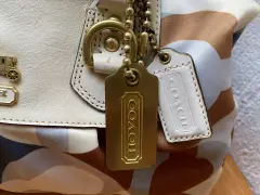 Coach satin op art. Edición op art en satín para llevar en mano o antebrazo con su asa corta, interior en satín azul, cuidada y limpia.