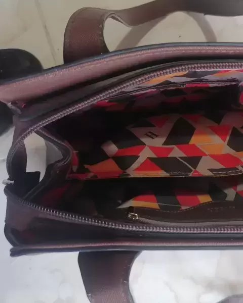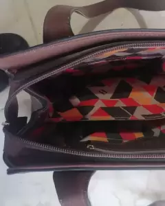 Hermosa bolsa. Bolso HUSER, color café con ligero detalle en correa, medidas 35x15cm
