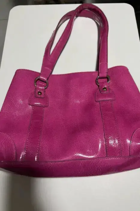 Descubre este bolso vintage de Liz Claiborne, en vibrante rosa con asa doble y un toque de desgaste en las cuatro esquinas inferiores que apenas si se notan en la ultima foto. Añade un toque de estilo clásico a tu colección con su funcionalidad y elegancia. Cuenta con 3 secciones interiores. Medidas 30 cm ancho x 22 cm alto x 8 cm profundidad.