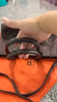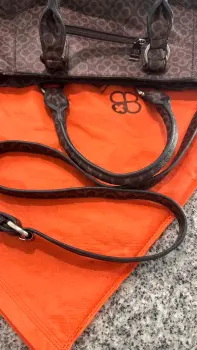 De color cafe con logos de la marca , las agarraderas así como la misma bolsa sin detalle alguno
