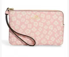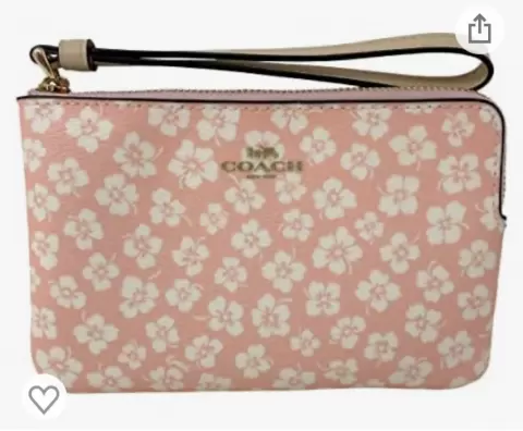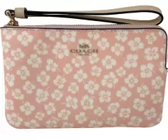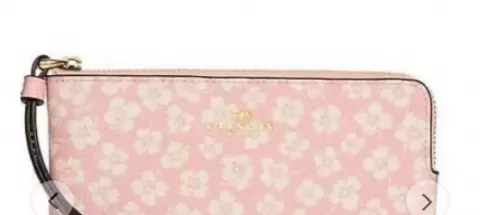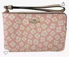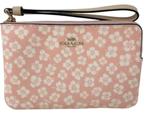 Hermosa muñequera color rosa pastel con flores confeccionada en piel, mide 16 cm por 10.5 cm, marca COACH original, muy cute!!!!!!!!!!