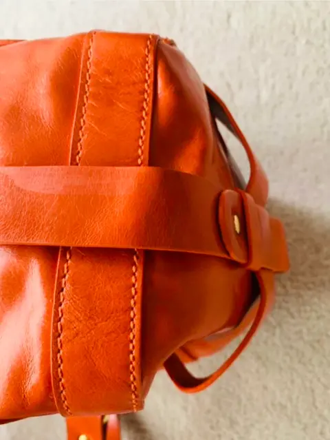 Bolsa 100% piel color naranja NUEVA!. Las bolsas son los completos ideales para cualquier outfit!! NUEVA! Hermosa bolsa de tamaño grande totalmente en piel y con errares en dorado. Muy trendy. Perfecta con cualquier look en café o jeans. Solo tiene un pequeño detalle en el gancho como un poco de óxido que no es visible. No mascotas y no fumadora. Más opciones en mi clóset.