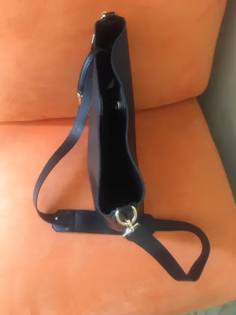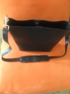 Bolsa negra con correa larga, sin compartimentos, completamente lisa y nueva, con correas completas