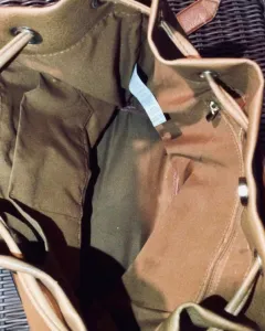 Bolsa color café tipo costal con grabado externo, tiene correa larga tipo cinto y correa para cerrar tipo costal con barbas, por dentro es súper amplia, tiene cierre y dos compartimentos uno grande y uno pequeño✨ ♡♡DISPONIBLE PARA ESTAR EN TU CLOSET♡♡✨