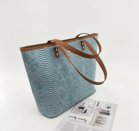 Bolsa grande tipo piel de víbora,color azul cielo