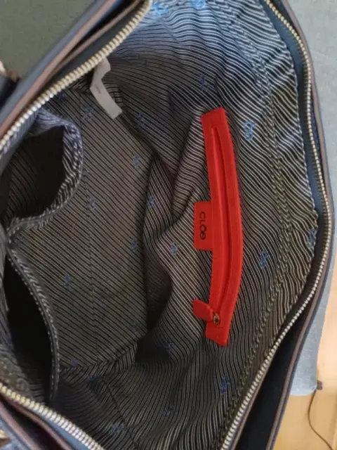 Bolsa Clōe azul marino. Bolsa cuadrada azul marino, las asas traen pequeño defecto de desgaste, pero el forro y todo lo demás se encuentra en excelentes condiciones