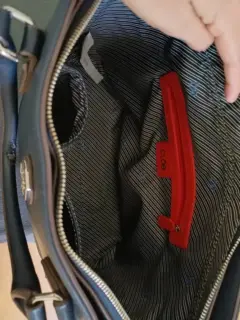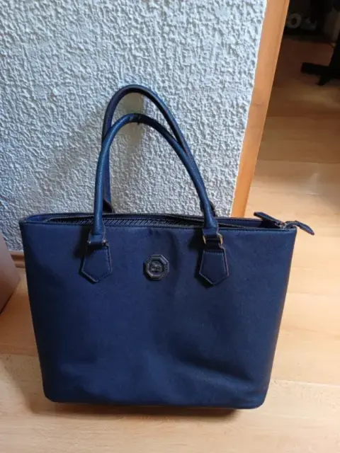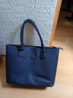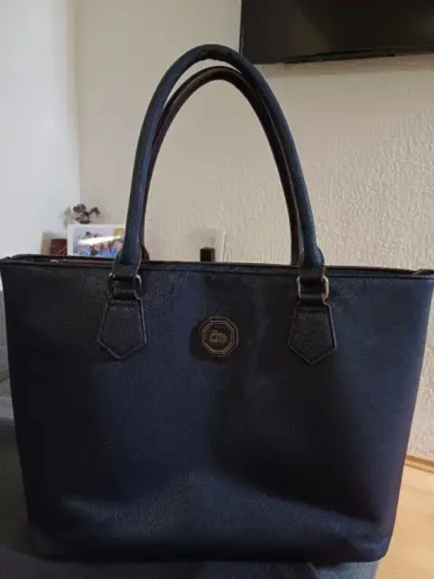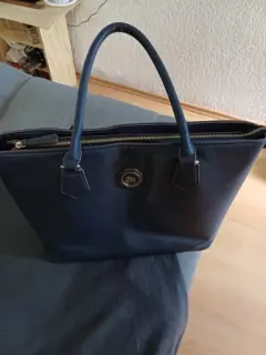 Bolsa cuadrada azul marino, las asas traen pequeño defecto de desgaste, pero el forro y todo lo demás se encuentra en excelentes condiciones