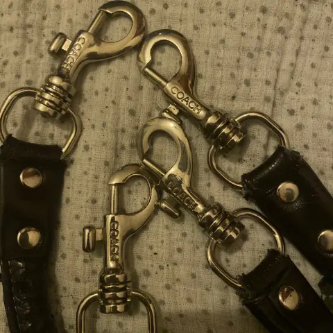 Bolsa coach. Bolsa coach tiene detalles visiblestodo lo que es el cuero se desgastó por el uso rudo que se le dio a la bolsa se tendría que cambiar toda lo de cuero…Lo que vendo son las hebillas son 4 las puedes usar en otra bolsa subí foto para que se vea el código de la bolsa original